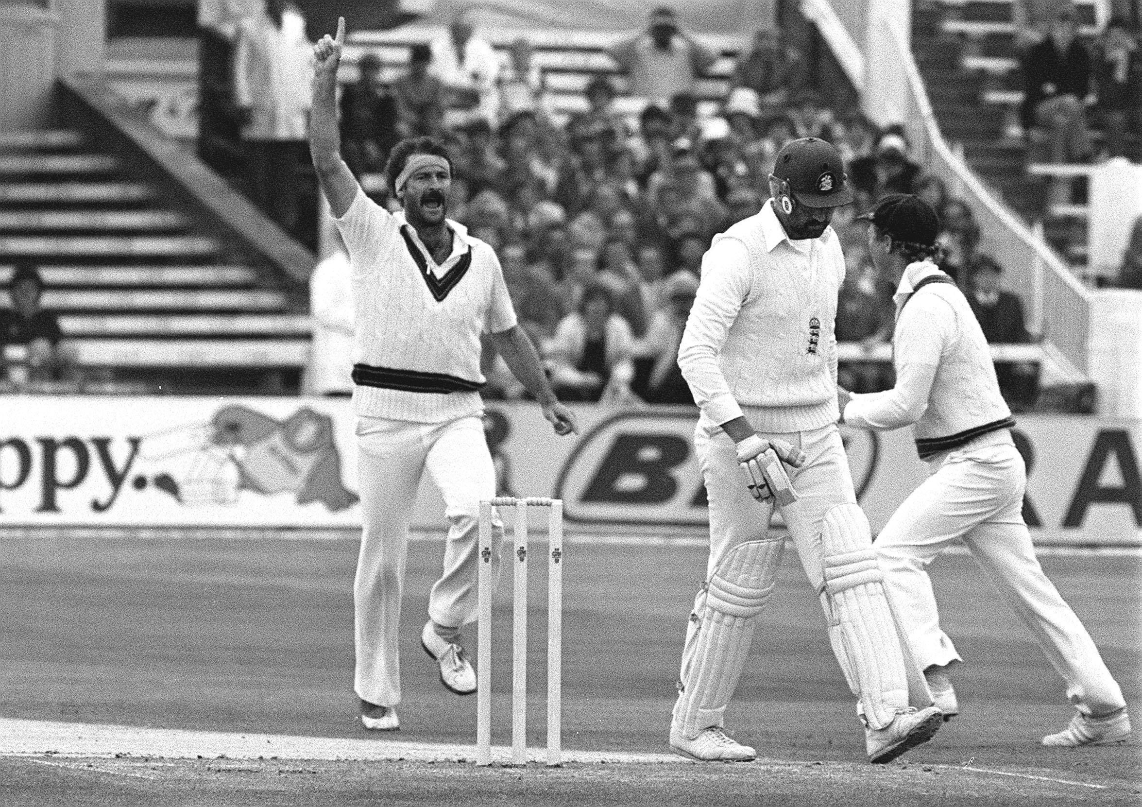 1981: Jubilation from Dennis Lillee as he takes the wicket of England oener Graham Gooch at Trent Bridge on the first day of the First Test between England and Australia. Gooch went for 10, caught by Wood.
