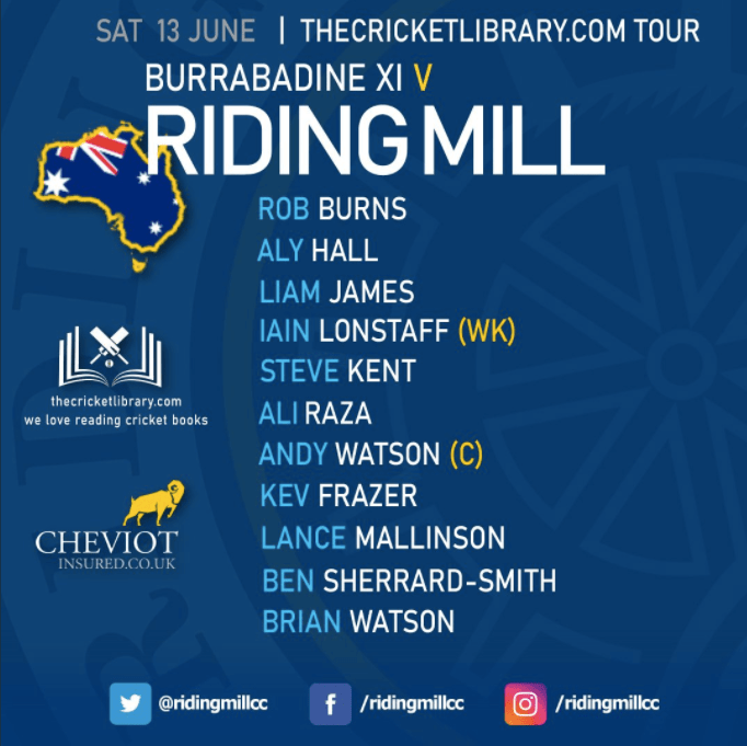 After completing their preparations with an eight wicket loss to their neighbours Mallards, Riding Mill have named their XI for games one and two of their virtual tour down under. Andy Watson is named to skipper the side against the Burrabadine XI which is expected to provide a good opportunity for the tourists to acclimatise to the conditions on what promises to be an exciting tour consisting of ten fixtures over the next month.