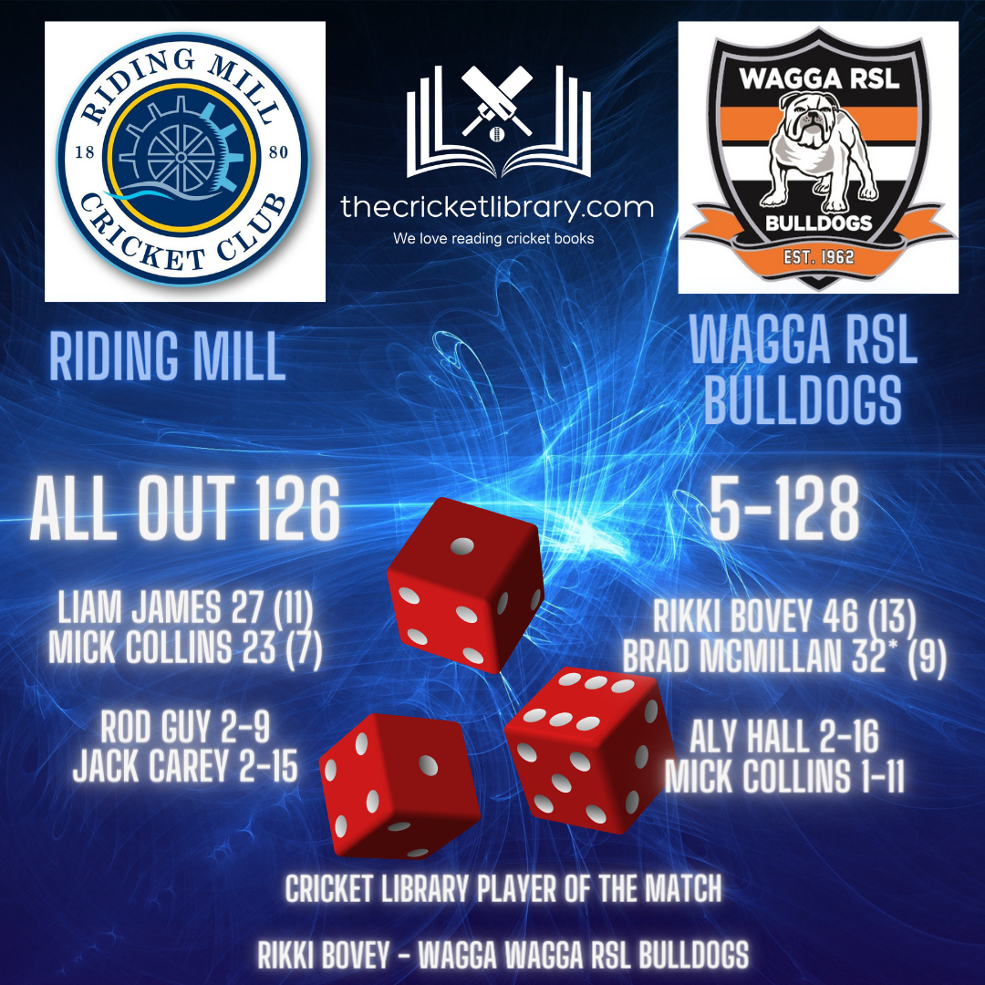 The intentions of the Wagga Wagga RSL Bulldogs was very clear with Rikki Bovey & Ethan Perry having a rapid fire 47 run opening stand. Remarkably, Perry had only faced one delivery when the first wicket fell with Bovey inflicting plenty of damage on the Riding Mill bowlers before Mick Collins sent his off stump cartwheeling out of the ground.