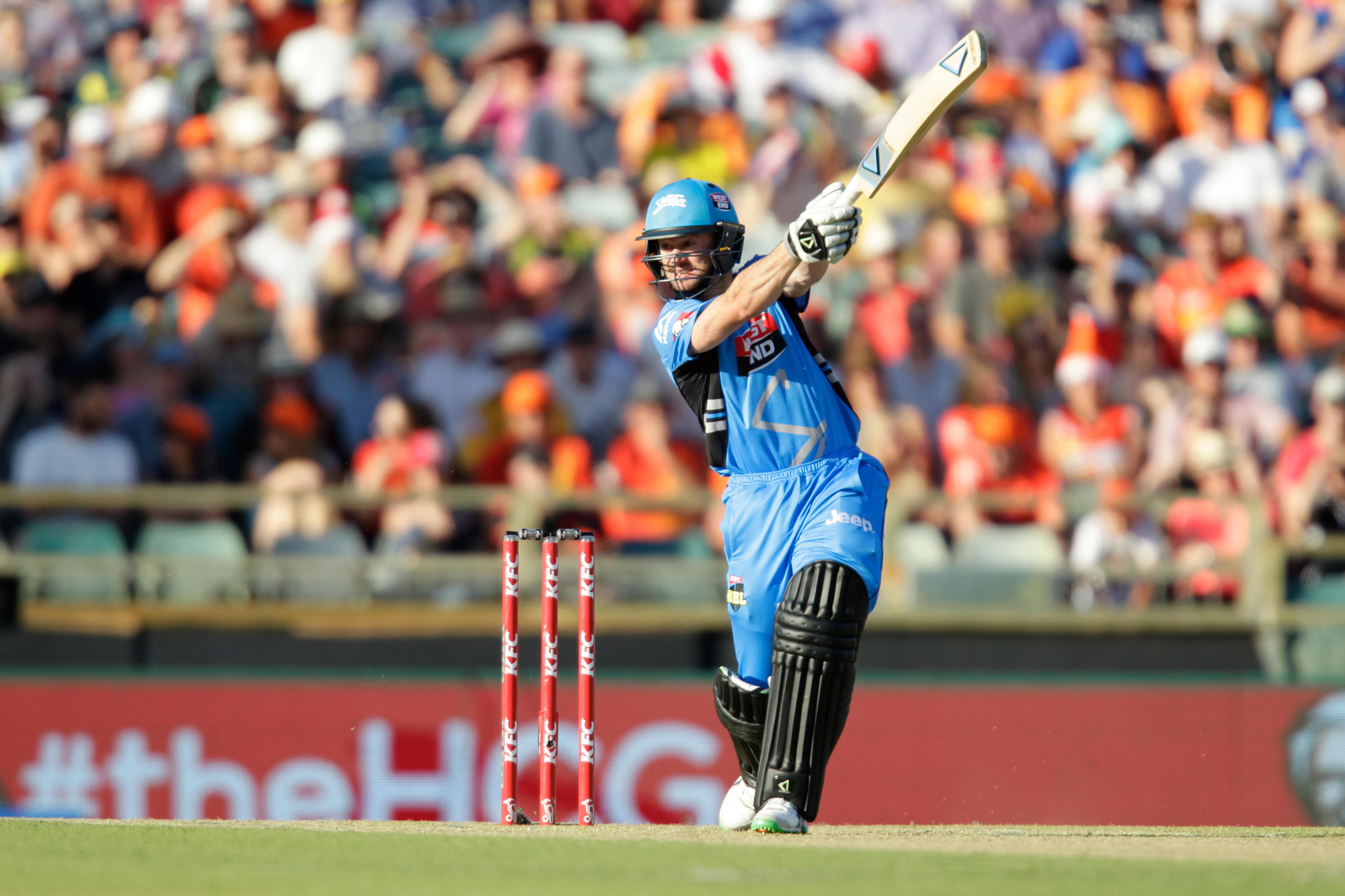 FA4F2Y Perth, Australia. 21st December, 2015. Big Bash Cricket league 05 Perth Scorchers versus Adelaide Strikers. Tim Ludeman hits one of his four boundarys during the first over of the Strikers innings. Credit: Action Plus Sports Images/Alamy Live News